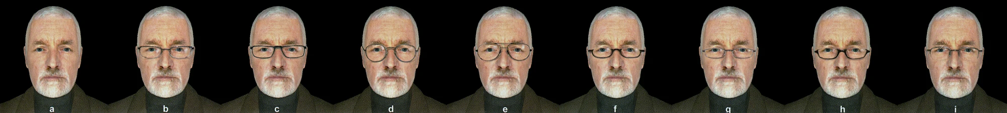 The different attempts of eyewear on Breen's model, viewed in the Source SDK faceposer.