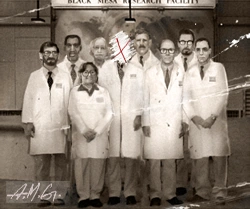 Photo of the Anomalous Materials team before the Black Mesa Incident as seen in Kleiner's Lab. Breen is most likely the person crossed out in the middle.